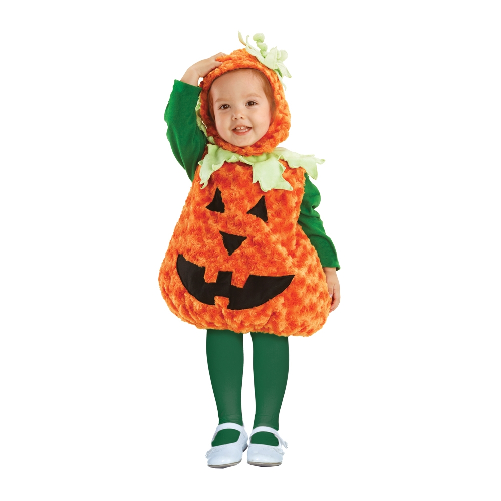 Nothing Could Be Cuter On Halloween Than Your Little Pumpkin Dressing Up As A....Cute Little Pumpkin! Plush Swirl Orange Fur Body With Jack O Lantern Design On Front, Cloth Collar Around Neck And Orange Hood With More Cloth On Top. Fits Toddler Size 18M-24M.
