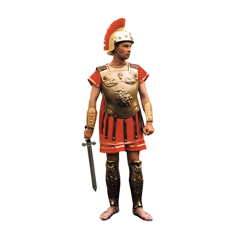 Black Plastic Armor With Gold Wash. Breastplate Features Decorative Vinyl Straps In Front, And Vinyl Straps In Back With Velcro Closure. Arm And Leg Armor Features Adjustable Velcro Closure. Includes- Breastplate, Leg-Knee Guards And Forearm Guards. (Helmet, Sword, Tunic, And Footwear Not Included.) One Size Fits Most Adults.