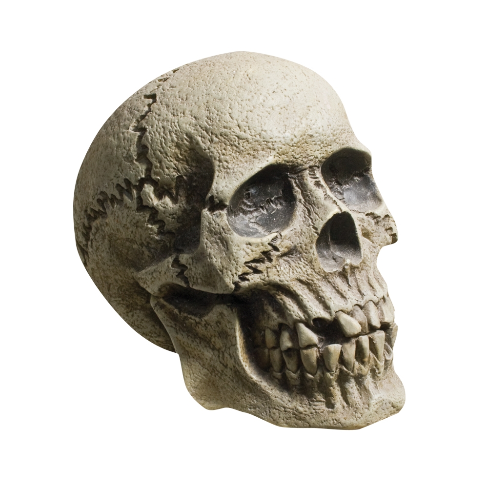 Realistically Detailed Life-Sized Polystyrene Skull. Great Addition To Any Haunted House Or Home Decor. 7 Inches Tall, 6 1-2 Inches Deep, 5 Inches Wide.