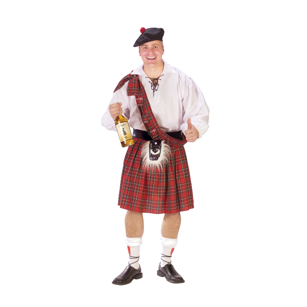 Red Plaid Kilt Has Covered Elastic Waist With Tie-Closure. Add Your Own Shirt, Belt With Sporran, Socks, And Tam. Shoulder Drape With Shot Glasses Not Included. Skirt Only. Men'S Standard Size Fits Up To 6Ft, 200Lbs. Approximately 22 Inches From Waistband To Hem.