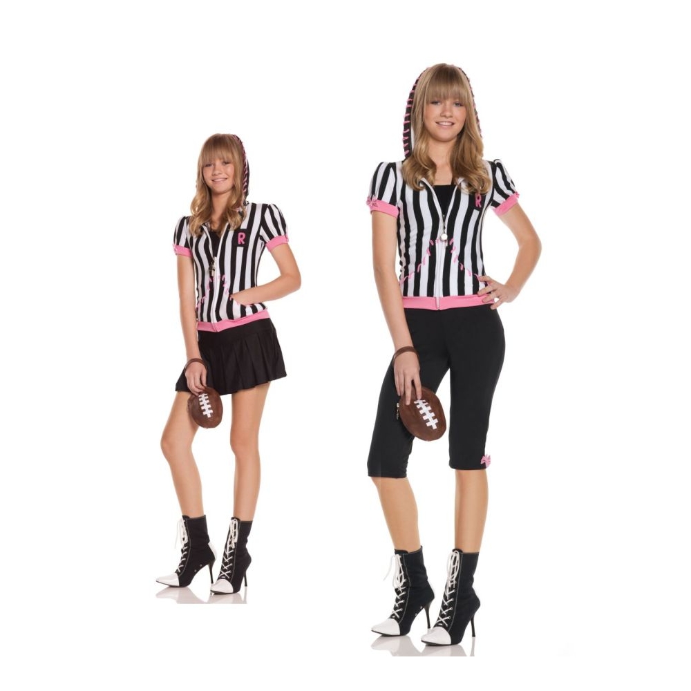 This Official Can Take You Out Of The Game! Traditional Black And White Striped Hoodie, Capri Pants, Skirt, Whistle And Football Purse. Junior Md-Lg 3-5.