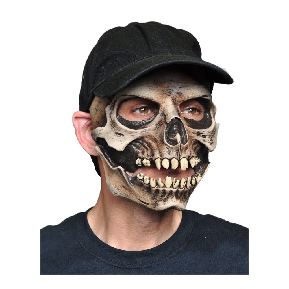 Movable Mouth, Latex Skull Mask With Baseball Cap Attached. Adult Size - One Size Fits Most.