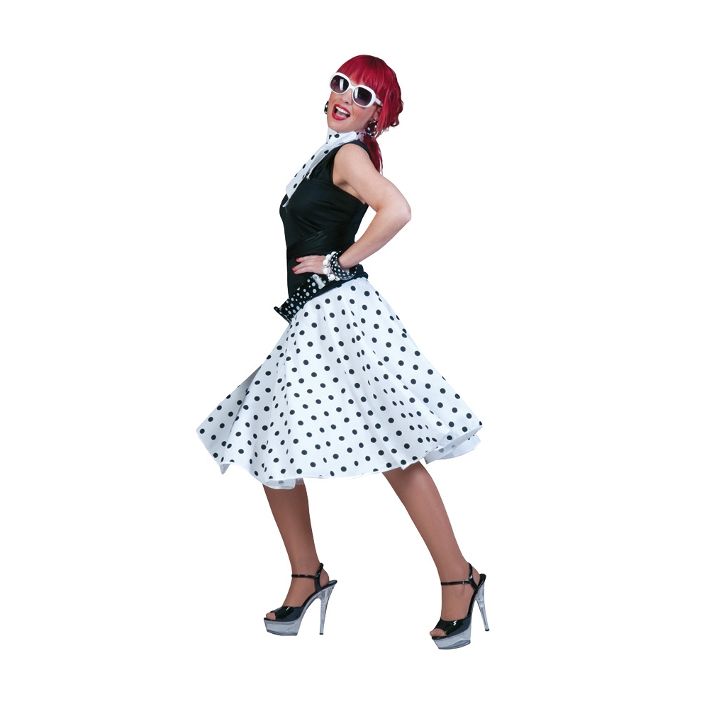 Go Back In Time To The Fabulous '50'S With This Great Matching Skirt-Scarf Combo. White With Black Dots. One Size With Multi-Button Adjustable Closure.