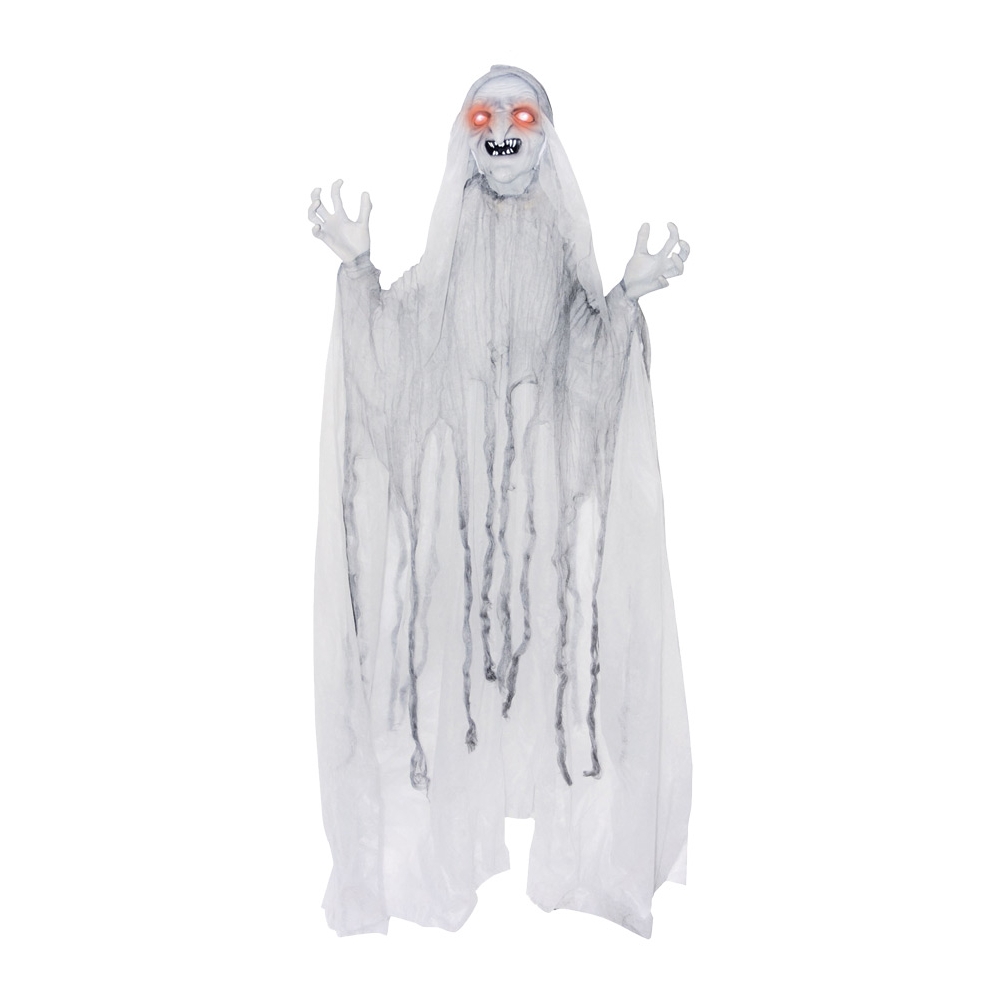 Spooky And Immediately Frightening, This Spinning Witch May Just Spin Your Victim'S Heart Out Of Their Body! Eyes Light In Multi-Color. Spins And Makes Noise For Approximately 20 To 30 Seconds, Then Reverses Course And Does It Again! Sound Activated. Requires 3Aa Batteries (Not Included). Height 60" X Width 46" X Depth 7.5".