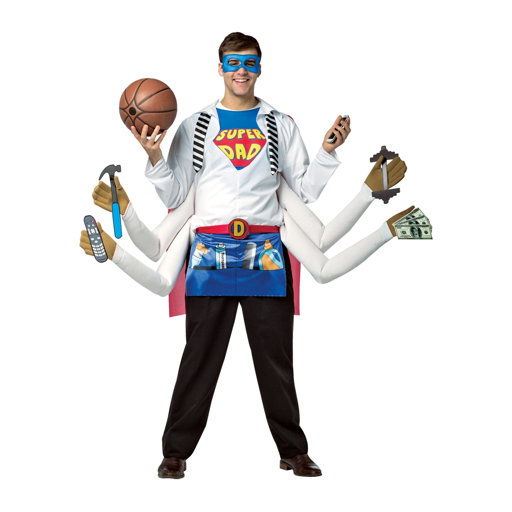 Do You Consider Yourself A Superdad? If So, This Costume Will Let The World Know As Well. Costume Features 4 Attached Foam Arms And Includes A Shirt With Super Dad Patch, Attached Neck Tie, Cape And Utility Apron, Eye Mask, And Paper Accessories. One Size Fits Most. 100% Polyester. Care Instructions: Do Not Wash, Bleach, Dry Clean Or Itron. Spot Clean Only.