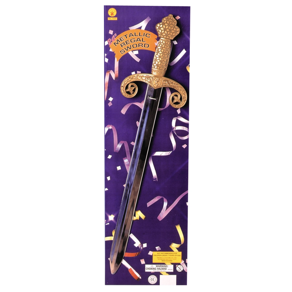 Beautifully Detailed Plastic Sword. Chrome-Look Blade With Gold Metal-Like Handle. 24 Inches Long.
