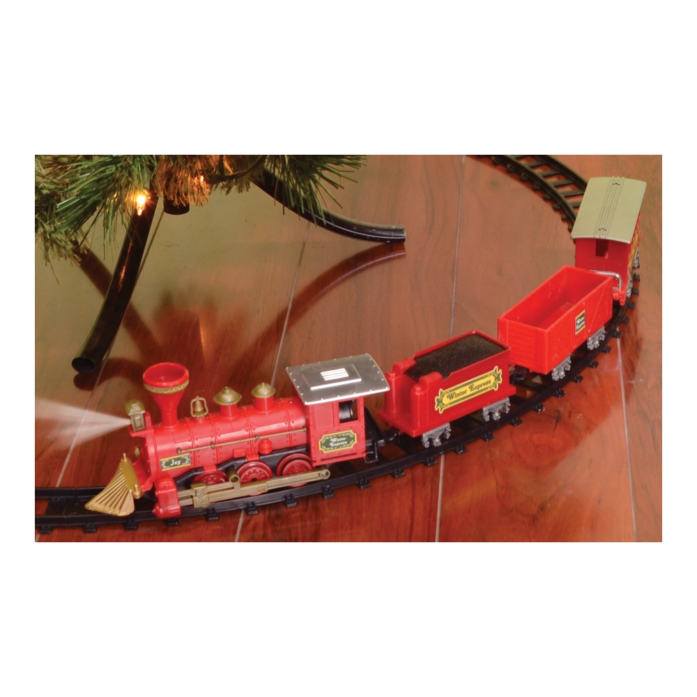 Great Decoration For Under Your Christmas Tree! Includes Engine, Coal Car, Cargo Car, And Caboose, With Over 100 Inches Of Track. Requires 2 Aa Batteries, Not Included.