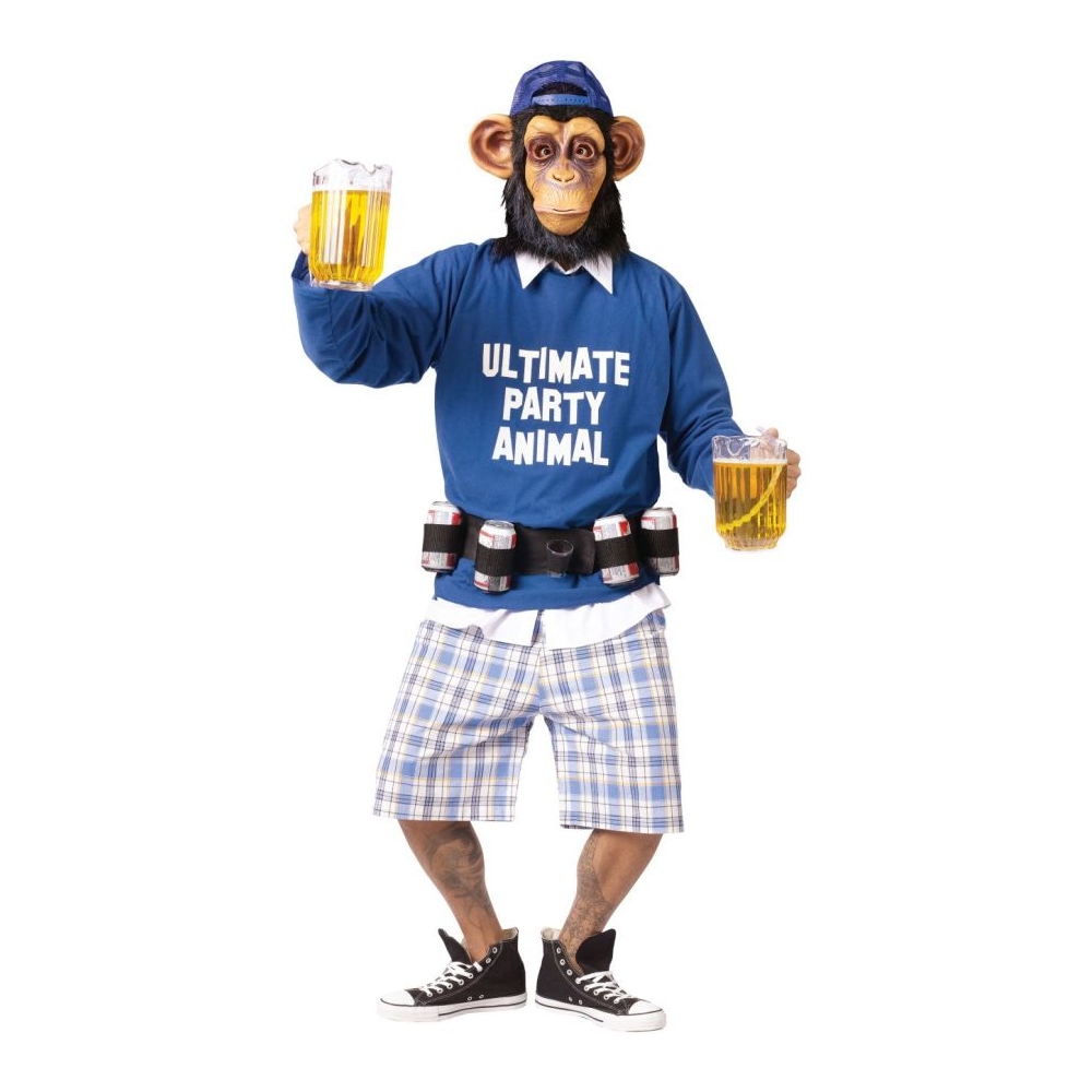 This Is One Party Animal! Top With Printed Front, Plaid Shorts, Beverage Holding Belt And Shotglass. Mask Included. Adult One Size.
