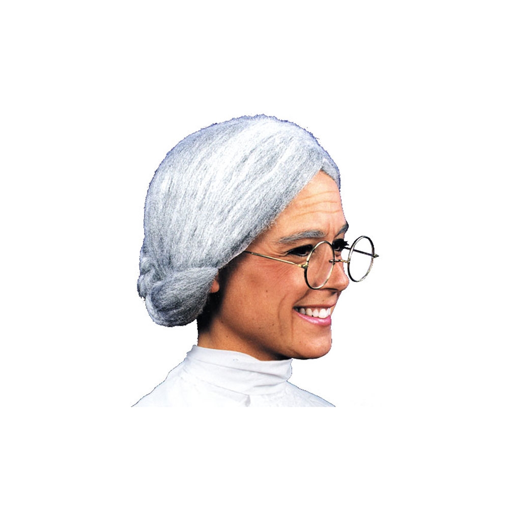 Value priced Old Lady grey wig is sleeked down with a low bun at the nape. Made of a cottony material, comes in a poly-bag with insert card. One size fits all.