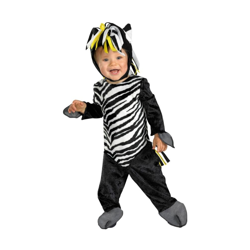 What'S Black And White And Cute All Over? Black And White Striped Jumpsuit And Matching Headpiece With Fringe Mane And Detachable Tail. 12-18 Months